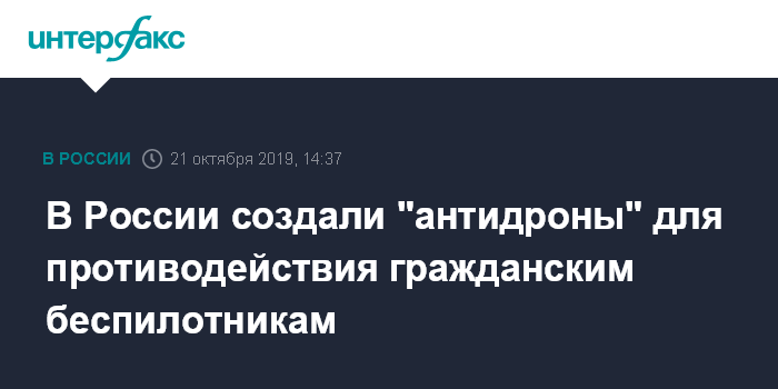 В России создали "антидроны" для противодействия гражданским беспилотникам