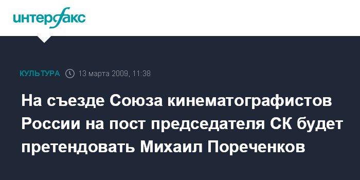 Москва. 13 марта. INTERFAX.RU - Актер и режиссер Михаил Пореченков будет претендовать на пост председателя Союза кинематографистов (СК) на внеочередном съезде, инициированном Никитой Михалковым.