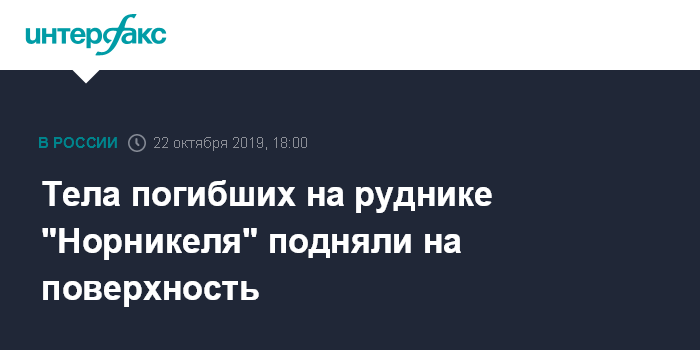 Тела погибших на руднике "Норникеля" подняли на поверхность