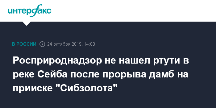Росприроднадзор не нашел ртути в реке Сейба после прорыва дамб на прииске "Сибзолота"