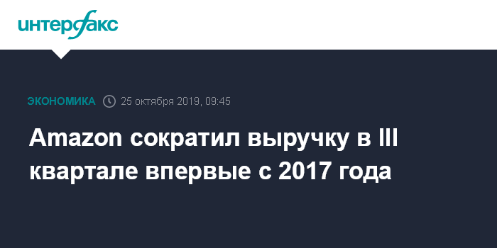 Москва. 25 октября. INTERFAX.RU - Крупнейший в мире интернет-ритейлер Amazon.com Inc объявил о первом с 2017 года снижении квартальной прибыли, а также предупредил, что и в четвертом квартале 2019 года его прибыль уменьшится.