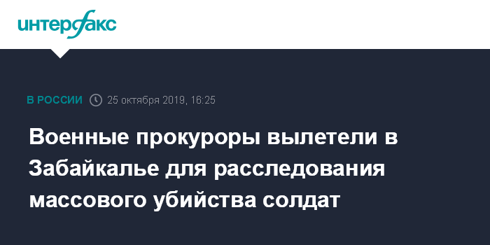 Москва. 25 октября. INTERFAX.RU - Военные прокуроры вылетели в Забайкалье для проведения проверки в воинской части, где солдат срочной службы в пятницу устроил стрельбу, унесшую жизни восьми его сослуживцев.
