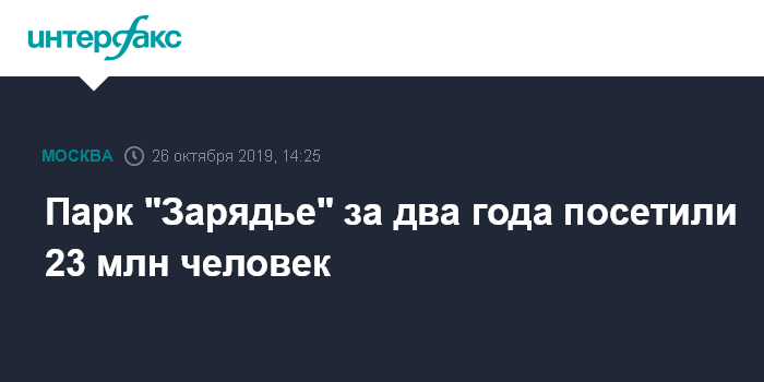 Москва. 26 октября. INTERFAX.RU - За два года с момента открытия парк "Зарядье" в центре Москвы увидели 23 млн человек, сообщил в субботу мэр города Сергей Собянин.