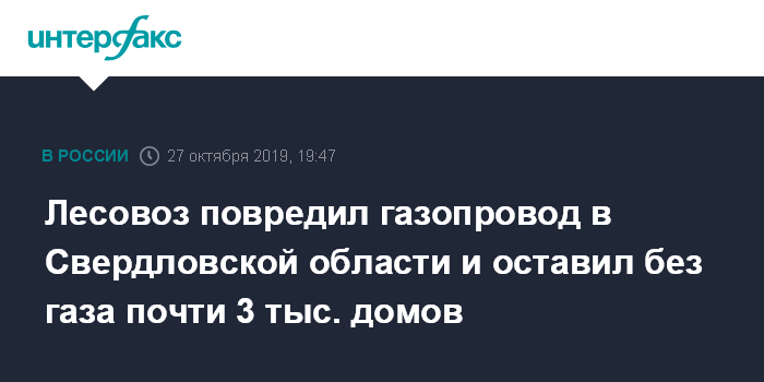 Лесовоз повредил газопровод в Свердловской области и оставил без газа почти 3 тыс. домов