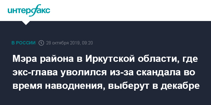 Мэра района в Иркутской области, где экс-глава уволился из-за скандала во время наводнения, выберут в декабре