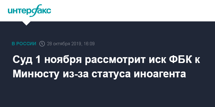 Суд 1 ноября рассмотрит иск ФБК к Минюсту из-за статуса иноагента
