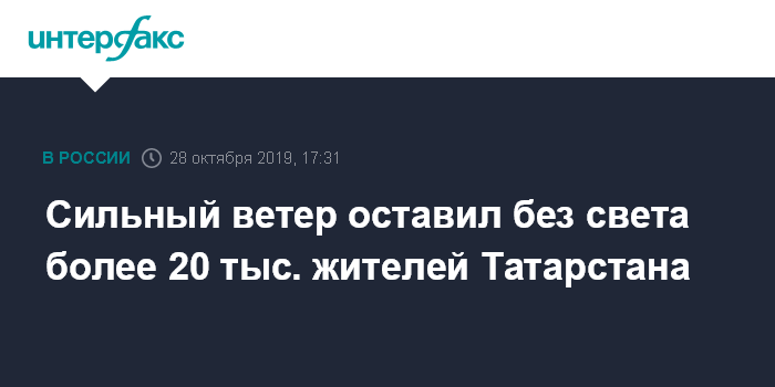 Москва. 28 октября. INTERFAX.RU - Порывистый ветер в Татарстане в понедельник привел к отключениям электричества в 60 населенных пунктах республики, в том числе в Казани, сообщает пресс-служба управления МЧС РФ по республике.