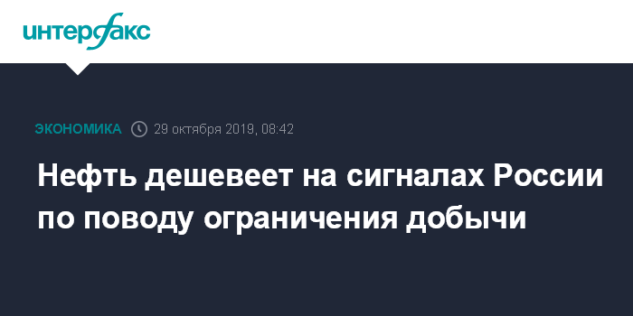 Москва. 29 октября. INTERFAX.RU - Цены на нефть снижаются во вторник, давление на рынок оказывают сигналы России о том, что еще слишком рано говорить о более существенном ограничении добычи.