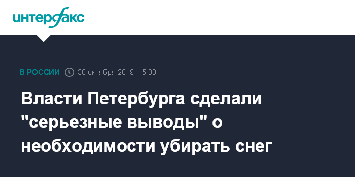 Москва. 30 октября. INTERFAX.RU - Жилищный комитет Петербурга проанализировал проблемы прошлой зимы и пришел к выводу, что основными задачами зимой должны быть уборка снега во дворах и на тротуарах, а также чистка крыш. Об этом сообщил руководитель комитета Виктор Борщев.