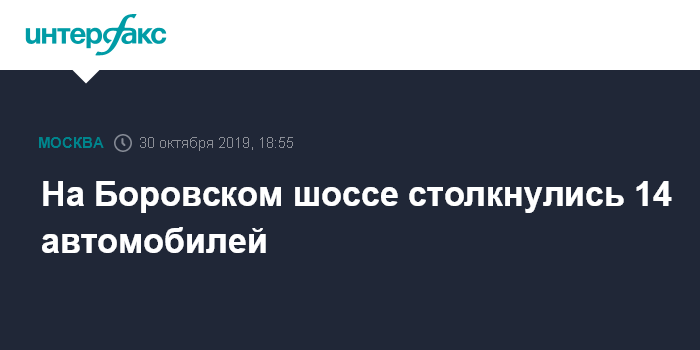 Москва. 30 октября. INTERFAX.RU - Крупная автомобильная авария в районе деревни Ликова в новой Москве стала причиной ограничения движения на Боровском шоссе, сообщили в пресс-службе ГИБДД столицы.