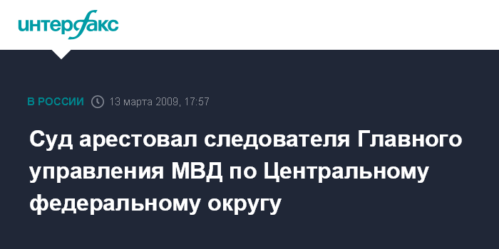 Суд арестовал следователя Главного управления МВД по Центральному федеральному округу