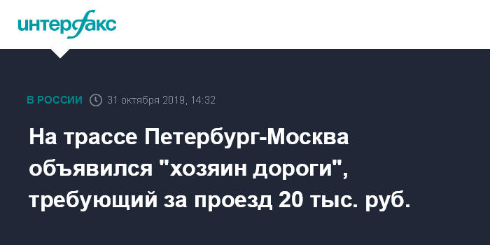 На трассе Петербург-Москва объявился "хозяин дороги", требующий за проезд 20 тыс. руб.