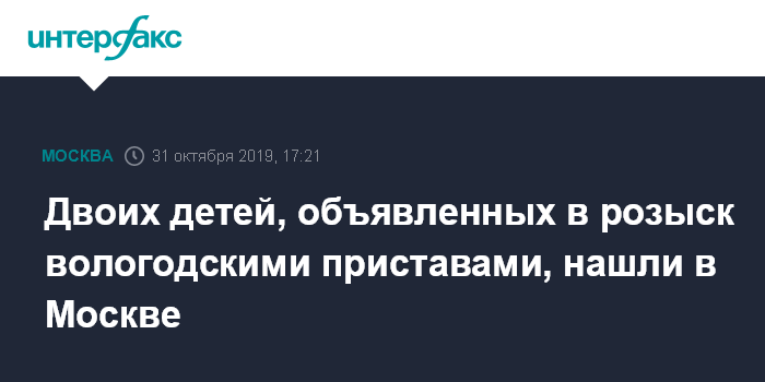 Москва. 31 октября. INTERFAX.RU - Полиция нашла в Москве детей, объявленных в розыск вологодскими приставами.