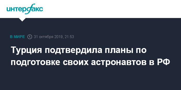 19 сентября Рогозин сообщил журналистам, что отправка в космос астронавта из Турции скорее всего состоится в 2023 году.