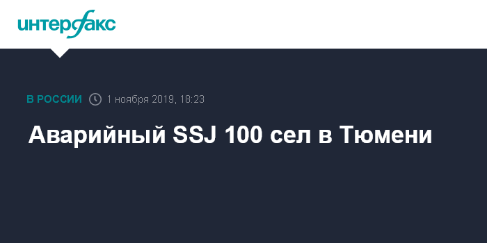 Москва. 1 ноября. INTERFAX.RU - Пассажирский самолет Superjet 100, у которого возникли проблемы с двигателем, приземлился в аэропорту "Рощино" в Тюмени. Эту информацию подтвердили в МЧС РФ.