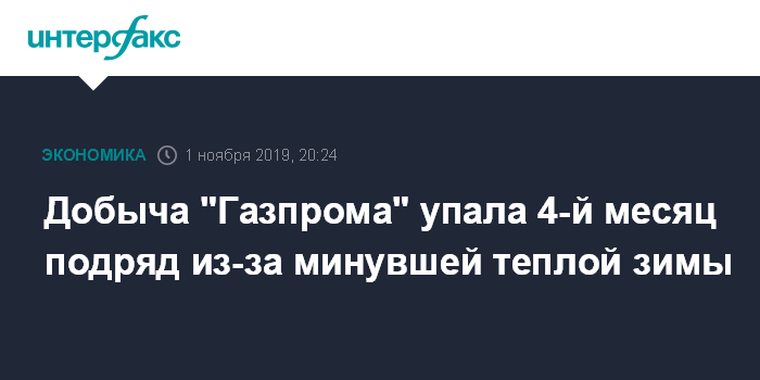 Причина снижения добычи - в наследии теплой зимы сезона 2018/19 годов. Она обусловила низкий расход газа из подземных хранилищ и, как следствие, низкий спрос летом, в период восстановления запасов в ПХГ (подземное хранилище газа).