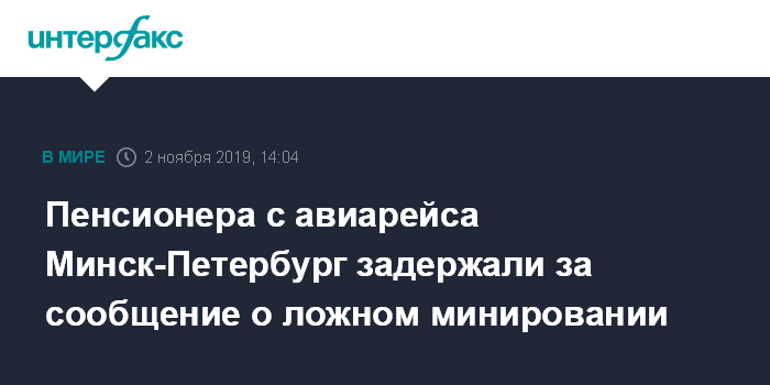 Москва. 2 ноября. INTERFAX.RU - Следственный комитет Белоруссии возбудил уголовное дело в отношении пожилого пассажира авиарейса Минск-Санкт-Петербург.