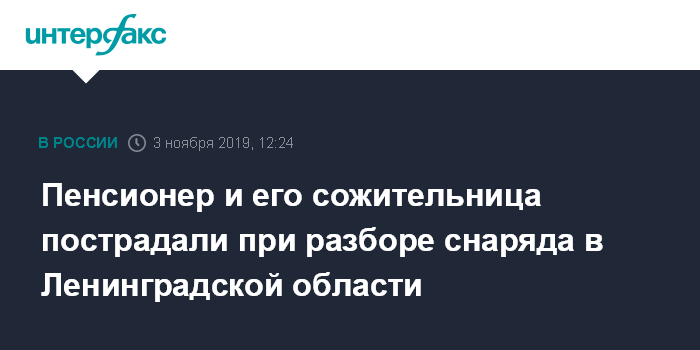 Как сообщил "Интерфаксу" источник в силовых структурах, в ночь на в воскресенье в квартире одного из домов города Сланцы произошел взрыв. 57-летний пенсионер разбирал боеприпас калибра 23 мм, при этом загорелся порох, в результате чего мужчина получил ожоги второй степени 90% тела. Его 51-летняя сожительница отравилась угарным газом.