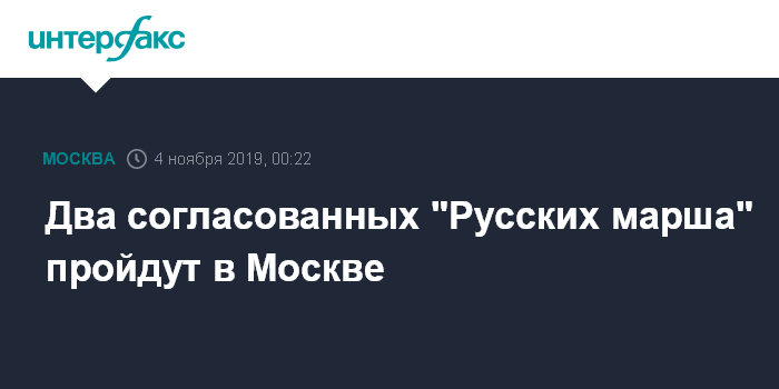 Москва. 4 ноября. INTERFAX.RU - 4 ноября в Москве пройдет сразу две независимых друг от друга акции националистов, обе носят название "Русский марш".