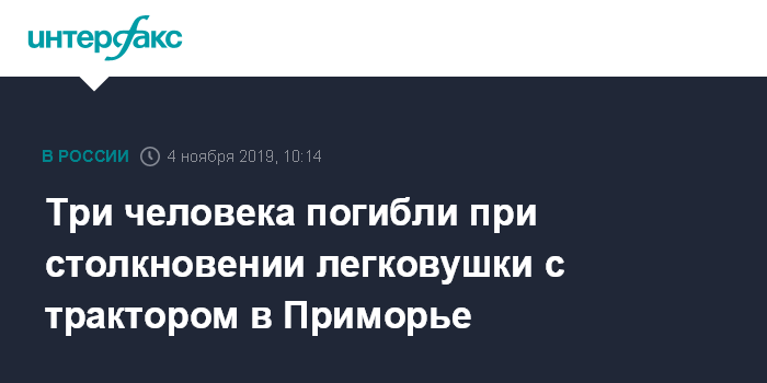 Три человека погибли при столкновении легковушки с трактором в Приморье
