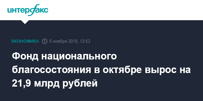 Фонд национального благосостояния в октябре вырос на 21,9 млрд рублей