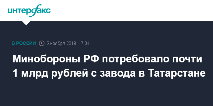 Минобороны РФ потребовало почти 1 млрд рублей с завода в Татарстане