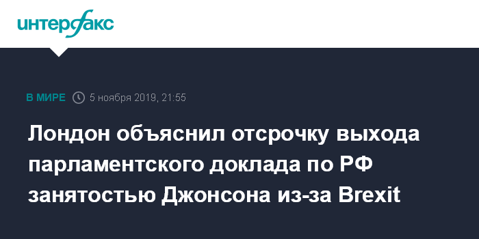 Лондон объяснил отсрочку выхода парламентского доклада по РФ занятостью Джонсона из-за Brexit