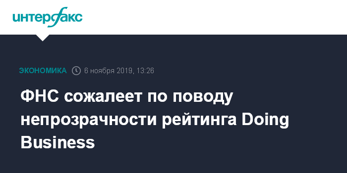 ФНС сожалеет по поводу непрозрачности рейтинга Doing Business