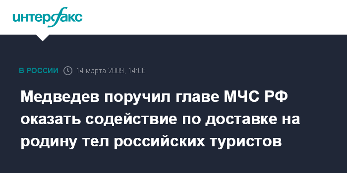 Медведев поручил главе МЧС РФ оказать содействие по доставке на родину тел российских туристов