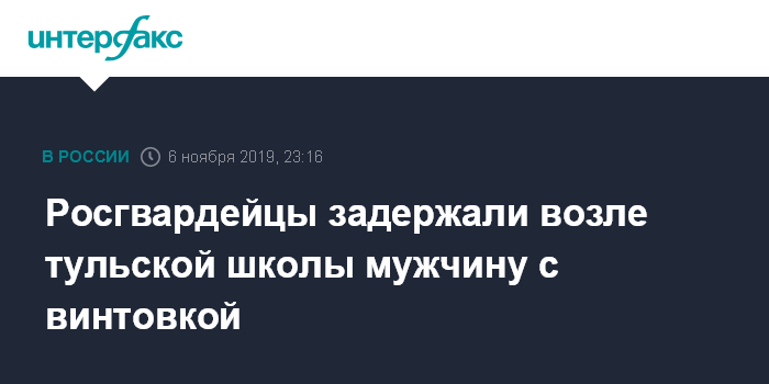 Москва. 6 ноября. INTERFAX.RU - Полиция в Туле задержала жителя Воронежа, направлявшегося в одну из школ с пневматической винтовкой, сообщила в среду пресс-служба управления Росгвардии по Тульской области.
