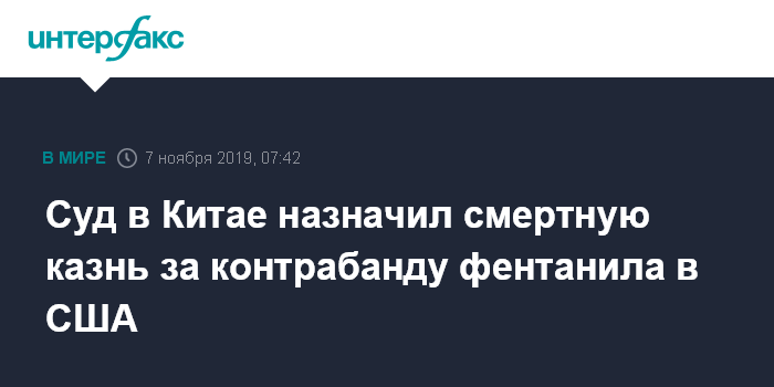 Суд в Китае назначил смертную казнь за контрабанду фентанила в США