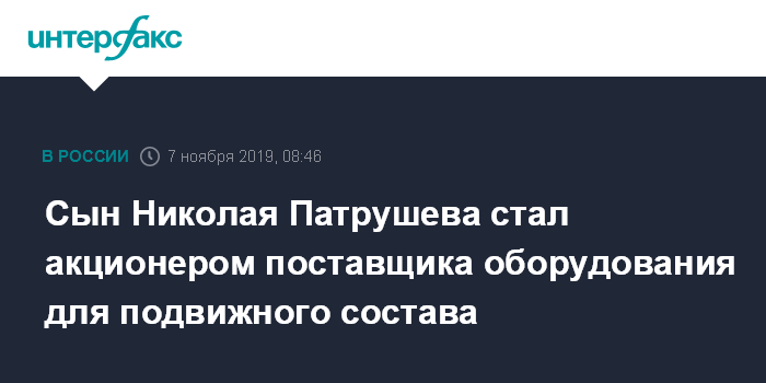 Сын Николая Патрушева стал акционером поставщика оборудования для подвижного состава