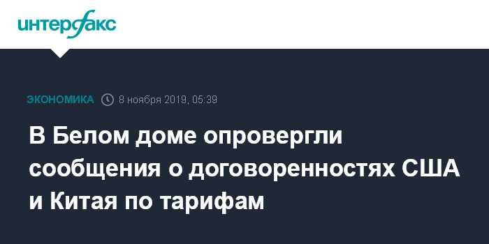 В Белом доме опровергли сообщения о договоренностях США и Китая по тарифам