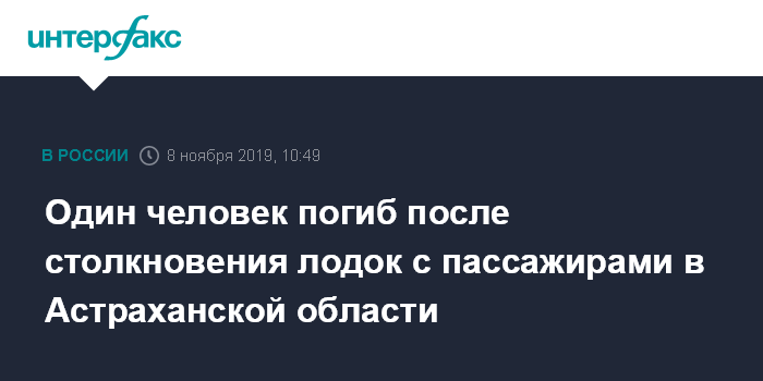 Москва. 8 ноября. INTERFAX.RU - Самодельная лодка с мотором и моторное судно столкнулись в Камызякском районе Астраханской области, сообщает ГУ МЧС по региону. Один из 12 пассажиров утонул.