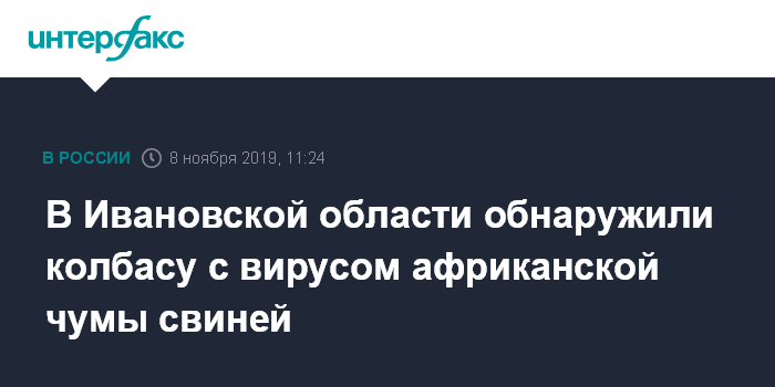 Москва. 8 ноября. INTERFAX.RU - Геном вируса африканской чумы свиней (АЧС) обнаружен в колбасе, привезенной в Ивановскую область из Калужской области, сообщает управление Россельхознадзора по Костромской и Ивановской областям.