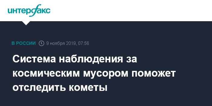 Москва. 9 ноября. INTERFAX.RU - Систему по наблюдению за космическим мусором в будущем модернизируют для контроля за астероидами и кометами, сообщил исполнительный директор "Роскосмоса" по перспективным проектам и науке Александр Блошенко.