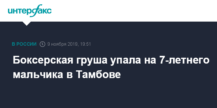Москва. 9 ноября. INTERFAX.RU - Ребенок госпитализирован с тяжелой травмой в Тамбове, после того как на него упала боксерская груша во время тренировки.