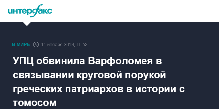 УПЦ обвинила Варфоломея в связывании круговой порукой греческих патриархов в истории с томосом