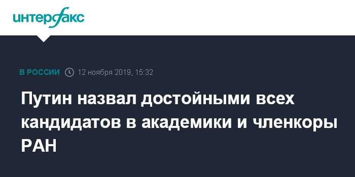 "Среди кандидатов, слава богу, не видно людей, не имеющих выдающихся заслуг перед наукой и не имеющих выдающихся открытий. Все люди очень достойные, имеющие действительно право претендовать на то, чтобы быть избранными и членом-корреспондентом, и действительным членом Академии наук", - сказал глава государства и пожелал всем им удачи.