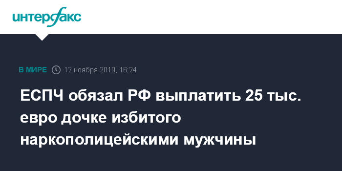 ЕСПЧ обязал РФ выплатить 25 тыс. евро дочке избитого наркополицейскими мужчины