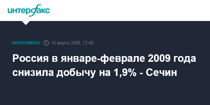 Россия в январе-феврале 2009 года снизила добычу на 1,9% - Сечин