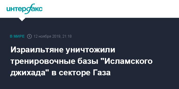 Москва. 12 ноября. INTERFAX.RU - Армия обороны Израиля во вторник во вторую половину дня нанесла очередную серию ударов по целям группировки "Исламский джихад" в секторе Газа, сообщает интернет-портал израильской газеты Jerusalem Post.