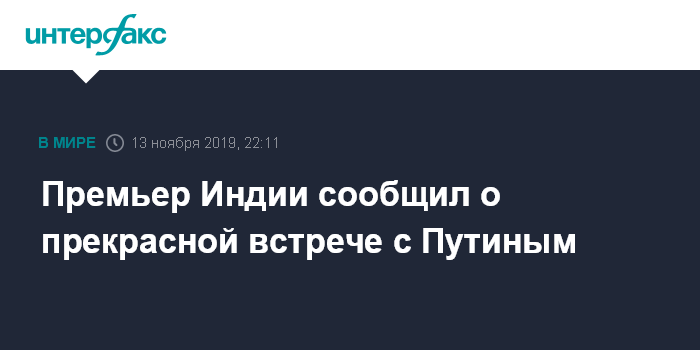 Москва. 13 ноября. INTERFAX.RU - Премьер-министр Индии Нарендра Моди сообщил в среду, что его встреча с президентом России Владимиром Путиным прошла эффективно.