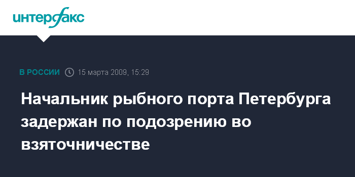 Санкт-Петербург. 15 марта. INTERFAX.RU - Начальник администрации морского рыбного порта Санкт-Петербурга Александр Штанько задержан по подозрению в получении взяток, сообщили "Интерфаксу" в Северо-Западном следственном управлении на транспорте СКП РФ в воскресенье.