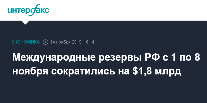 Международные резервы РФ с 1 по 8 ноября сократились на $1,8 млрд
