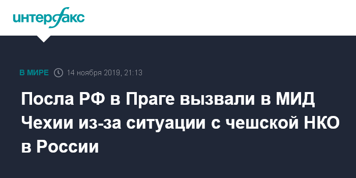 "Встречу с послом провел заместитель министра иностранных дел Мартин Повейсил, который обратился к послу за объяснениями, почему деятельность этой организации нежелательна в России, и выразил обеспокоенность этим шагом российской стороны", - говорится в сообщении, размещенном на сайте чешского внешнеполитического ведомства.