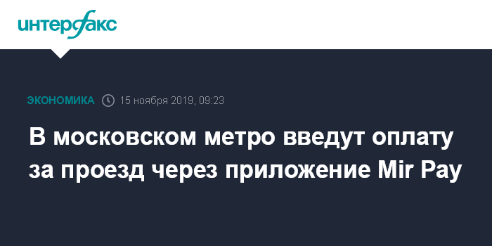 Москва. 15 ноября. INTERFAX.RU - В московском метро платить за проезд можно будет на турникетах с помощью мобильного сервиса Mir Pay для смартфонов с функцией бесконтактных платежей, сообщил сайт мэрии.