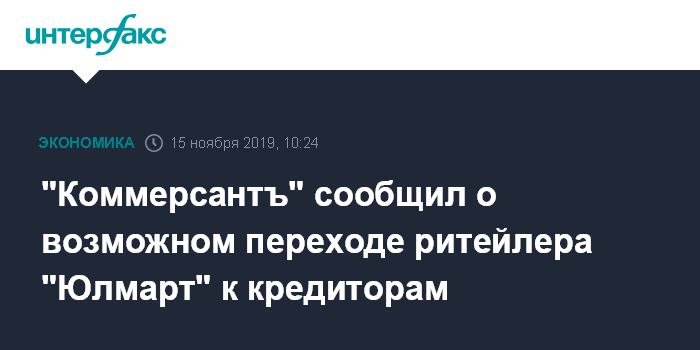 "Коммерсантъ" сообщил о возможном переходе ритейлера "Юлмарт" к кредиторам