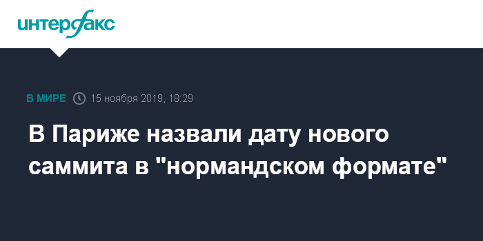 Москва. 15 ноября. INTERFAX.RU - Саммит "нормандского формата" с участием лидеров Франции, России, Германии и Украины запланирован на 9 декабря в Париже, сообщает Bloomberg со ссылкой на канцелярию президента Франции.