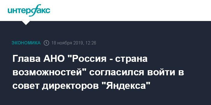 Глава АНО "Россия - страна возможностей" согласился войти в совет директоров "Яндекса"